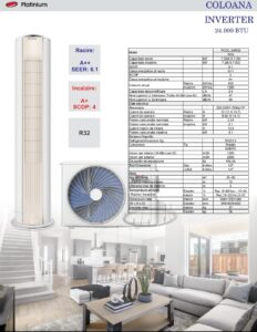 Aer conditionat tip coloana Platinium PCOL-24R32 , Inverter 24000 BTU , Clasa A++/A+
