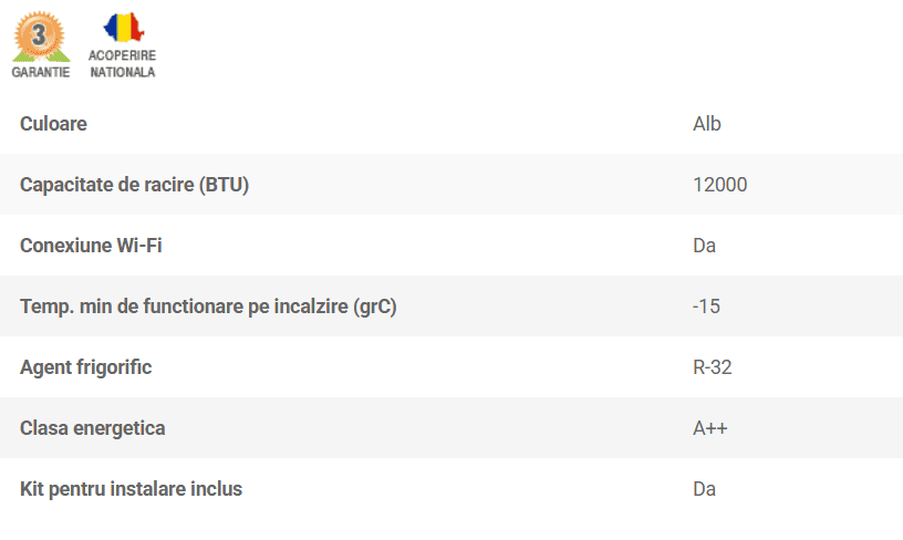 Aer conditionat Hava Smart Plus, Wi-Fi, 12000 BTU, clasa energetica A++, cu kit de instalare inclus