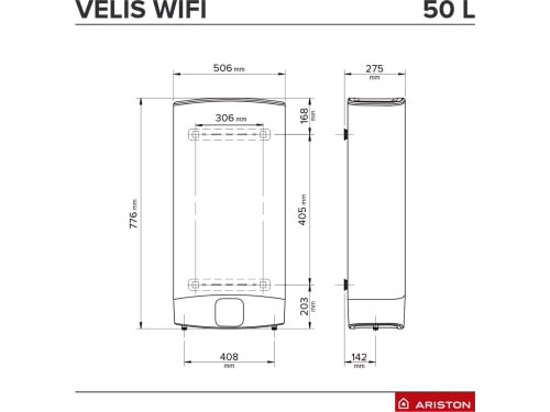 Boilerul Ariston Velis EVO Wi-Fi este un model electric ce integrează caracteristicile apreciate ale seriei Velis Evo Plus cu avantajul controlului prin internet via aplicația Ariston Net. Echipat cu modul Wi-Fi, permite reglarea temperaturii de la distanță prin smartphone și monitorizarea consumului energetic. Destinat încălzirii apei menajere, are o capacitate de 50 de litri, montare murală și aparține clasei energetice B. Cu un design super-plat, de doar 27 cm grosime, poate fi instalat atât vertical, cât și orizontal. Structura internă unică, cu două compartimente separate, asigură o stratificare eficientă a apei, reducând timpul necesar încălzirii pentru un duș.