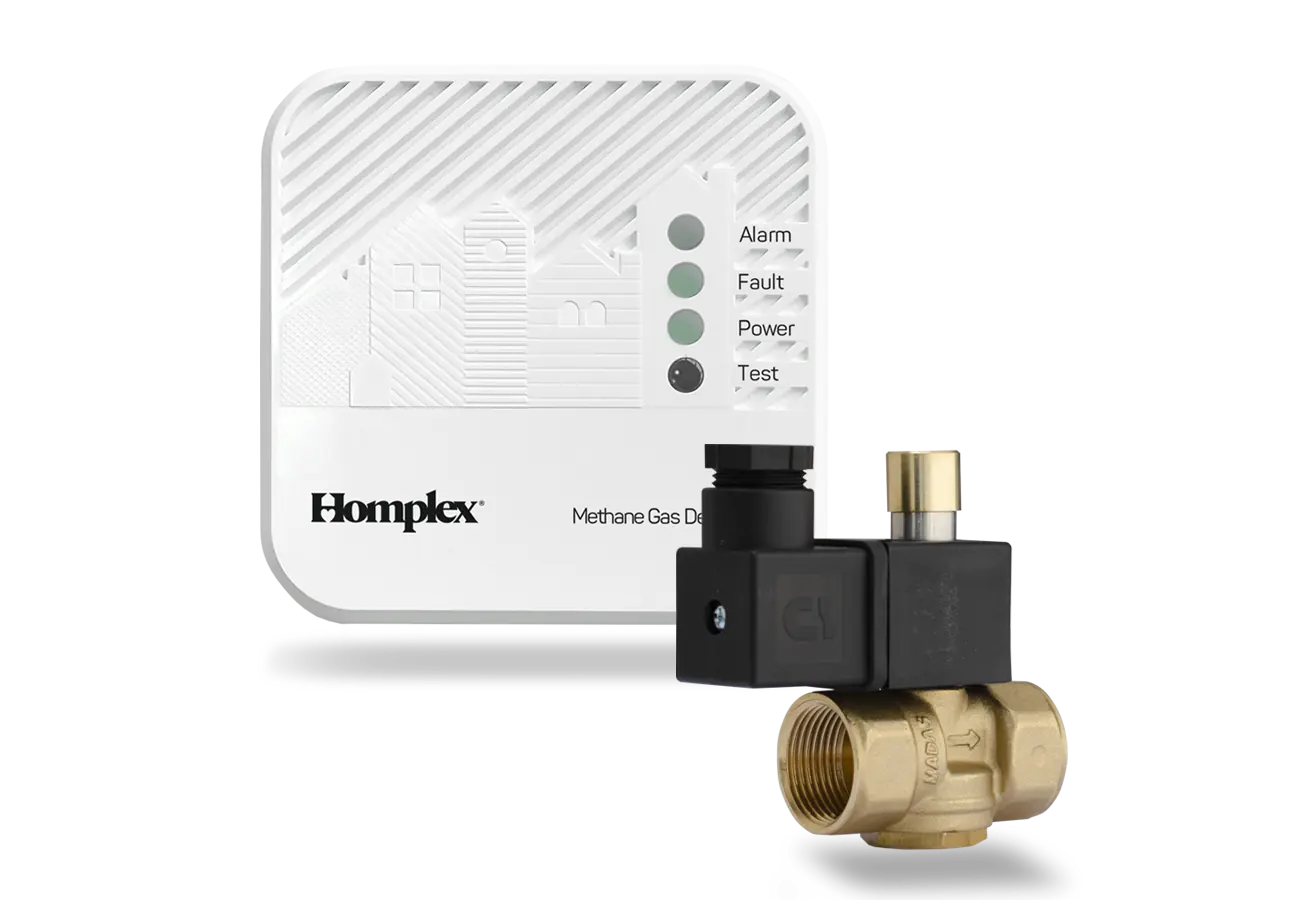 Datorită electrovalvei Madas incluse în pachet, alimentarea cu gaz va fi oprită.  Astfel, echipamentul îmbină fiabilitatea detectoarelor Homplex cu calitatea electrovalvelor Madas, producător italian recunoscut internațional.