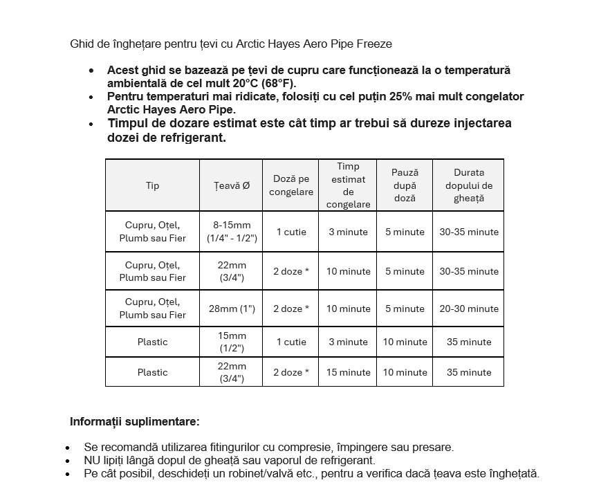 150ml Aero Kit este potrivit pentru o singură înghețare pe țevi orizontale sau verticale de 8-15mm.