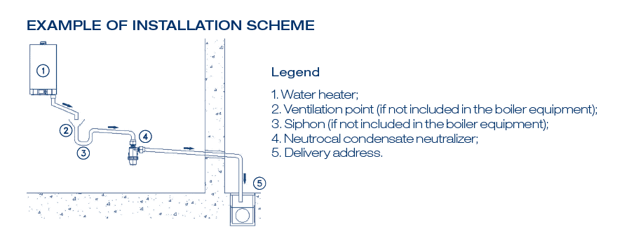 NeutroCAL este un neutralizator de condens acid, care provine din procesul de condensare a vaporilor de apă în sistemul de evacuare a fumului al generatoarelor de căldură. NeutroCAL este echipat cu un cartuș pentru a conține materialul neutralizant; pentru înlocuirea acestuia, este suficient să extragi cartușul, să îndepărtezi materialul uzat și să-l încarci cu cel nou. NeutroCAL este, de asemenea, echipat cu un by-pass, format dintr-o serie de orificii în partea superioară a cartușului, care împiedică condensul să se întoarcă în boiler, în eventualitatea puțin probabilă în care granulele ar împiedica fluxul normal. În pachet sunt incluse 2 conectori de furtun de 3/4″ ø 16 – 20, 1 suport cu șuruburi și 1 material PC010 Dolomită Calcinată gr. 200.