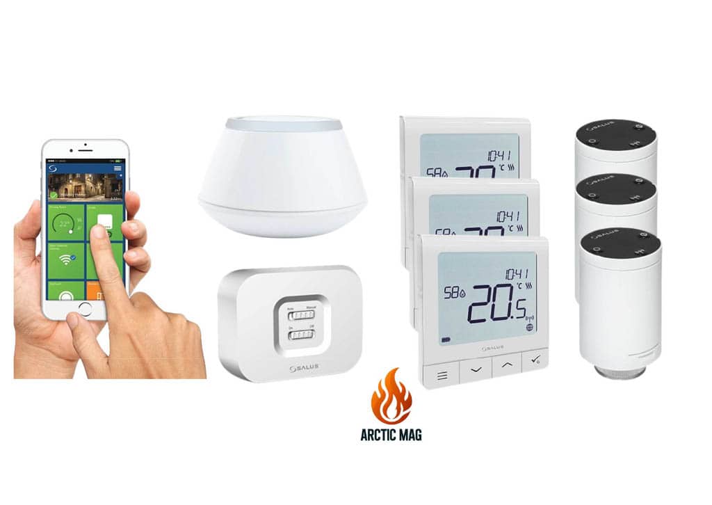 Pachet Salus IT600 Smart Home 3 zone cu radiatoare, termostate Salus Quantum Alb