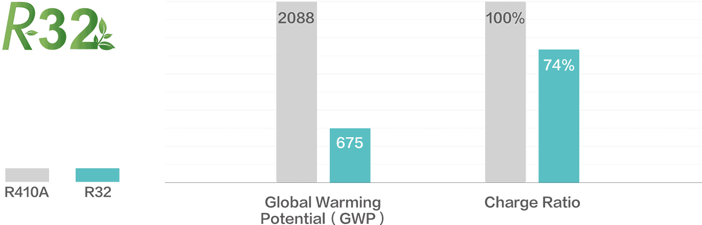 Agentul frigorific R32 contribuie la respectarea țintelor stabilite de regulamentul F-gas conform Regulamentului UE 517/2014. Sistemul de pompă de căldură Hisense Hi-Therma utilizează R32, oferind o soluție eficientă pentru atingerea noilor ținte europene de emisii de CO₂.