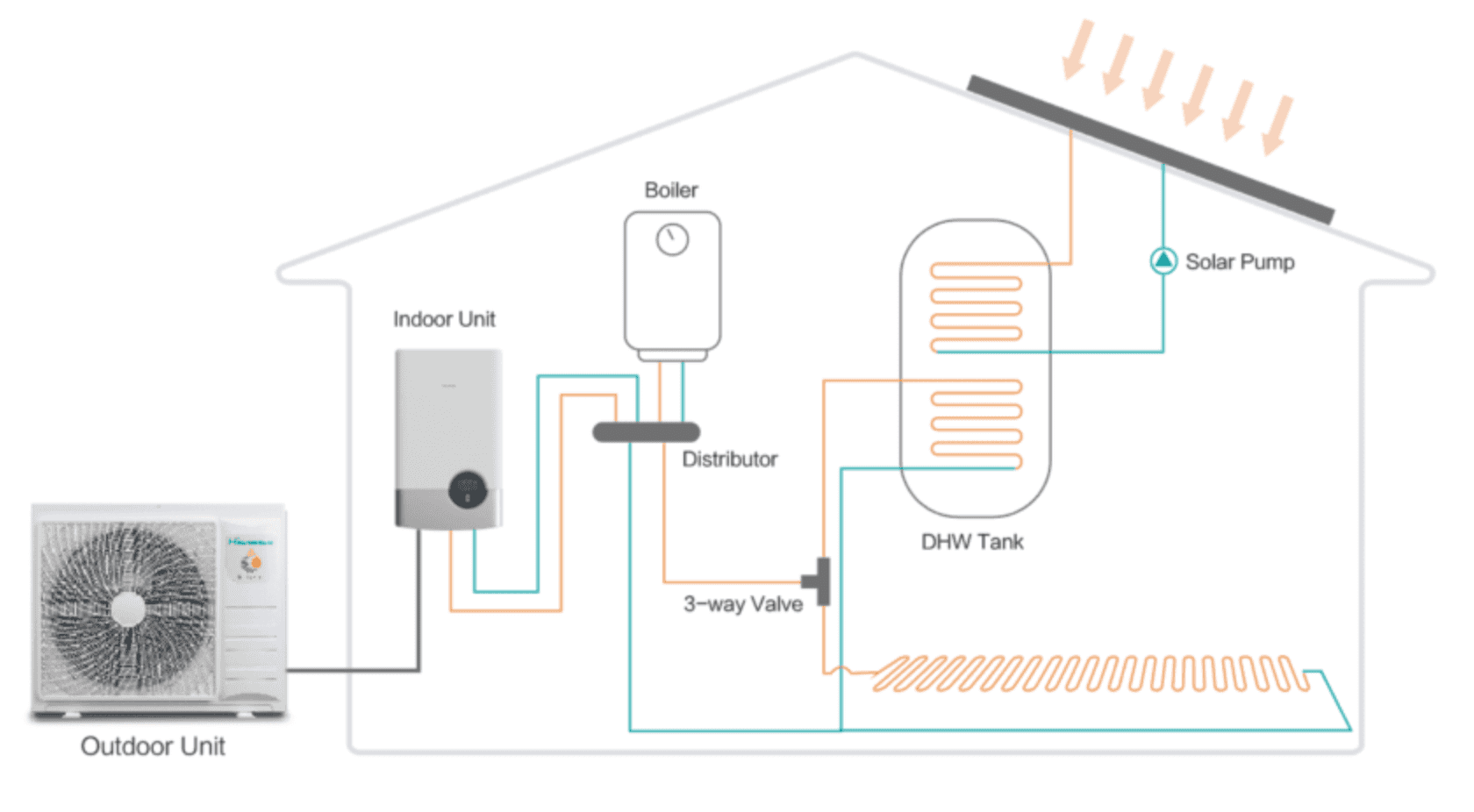 Sistemul Hi-Therma poate fi conectat la o sursă de căldură externă, cum ar fi panouri solare termice sau cazane, care pot funcționa ca sursă auxiliară. Datorită acestei conexiuni, experiența utilizatorului și eficiența energetică sunt optimizate.