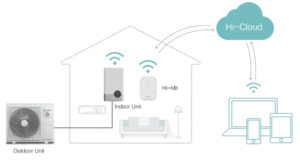 După conectarea adaptorului Hi-Mit la internet prin LAN sau wireless, utilizatorii pot controla sistemul Hi-Therma direct de pe telefon, accesând toate funcțiile prin aplicație.