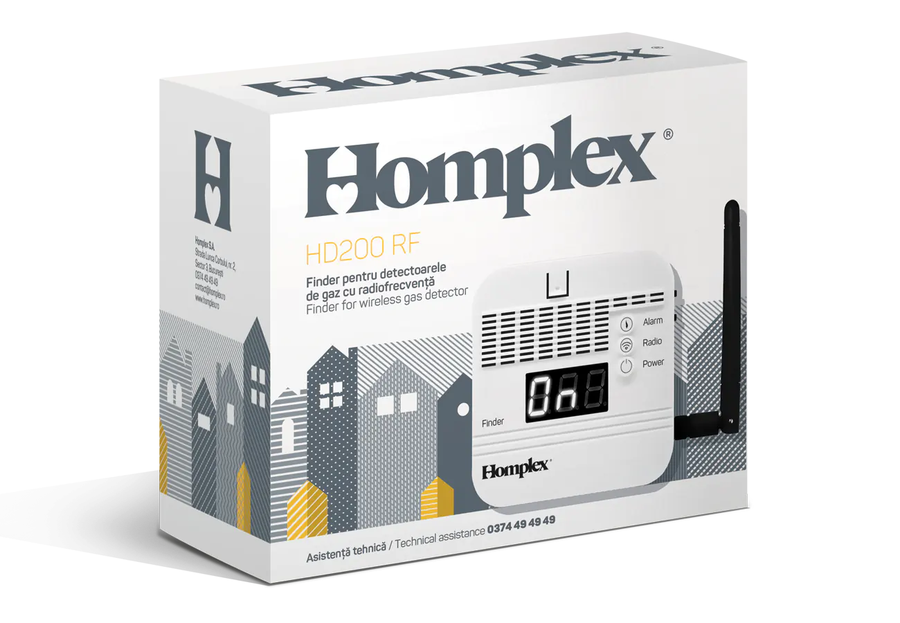 HD200 RF funcționează ca un centralizator (finder) pentru detectoarele de gaz metan HD100 RF. Finder-ul Homplex HD200 RF afișează numărul detectorului sau al apartamentului care a declanșat alarma.