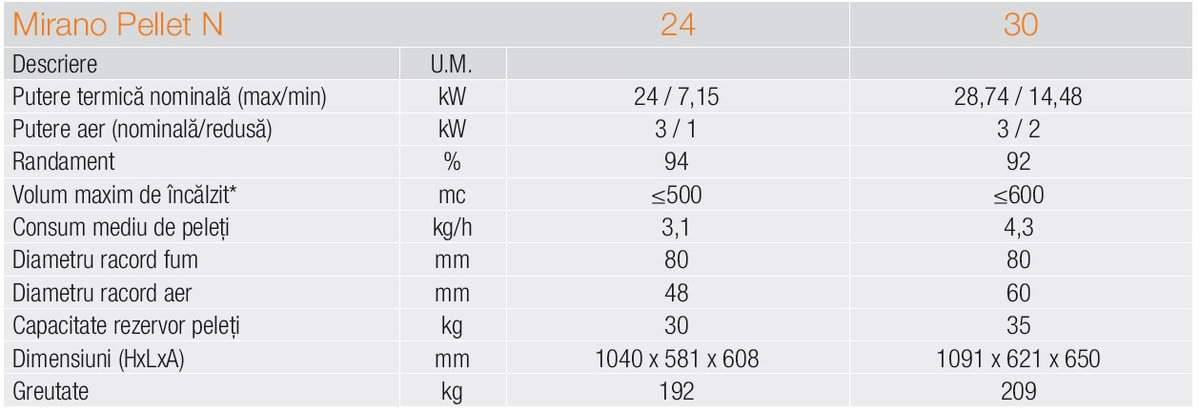 Termosemineu peleti Ferroli Mirano Pellet 30 N este proiectat si fabricat pentru a functiona numai cu peleti clasa A (DIN plus 51731) cu urmatoarele caracteristici: