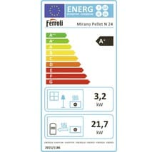 Termosemineul Ferroli Mirano Pellet 24 N este un dispozitiv automatizat pentru încălzire centralizată, echipat complet cu pompă de încălzire, vas de expansiune, supapă de siguranță, termostat de siguranță, panou de comandă digital, sistem de autocurățare prin debit de aer mărit, buncăr pentru peleți și tavă de cenușă detașabilă. Controlul combustiei este optimizat printr-un algoritm de modulare care reduce automat alimentarea cu peleți și aer pe măsură ce cazanul atinge temperatura setată.