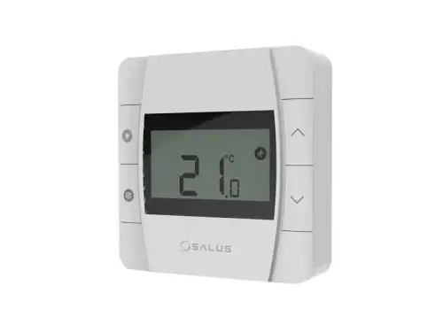 Salus DT300 este un termostat ambiental neprogramabil, cu transmisie prin cablu, usor de folosit, cu afisaj LCD iluminat.